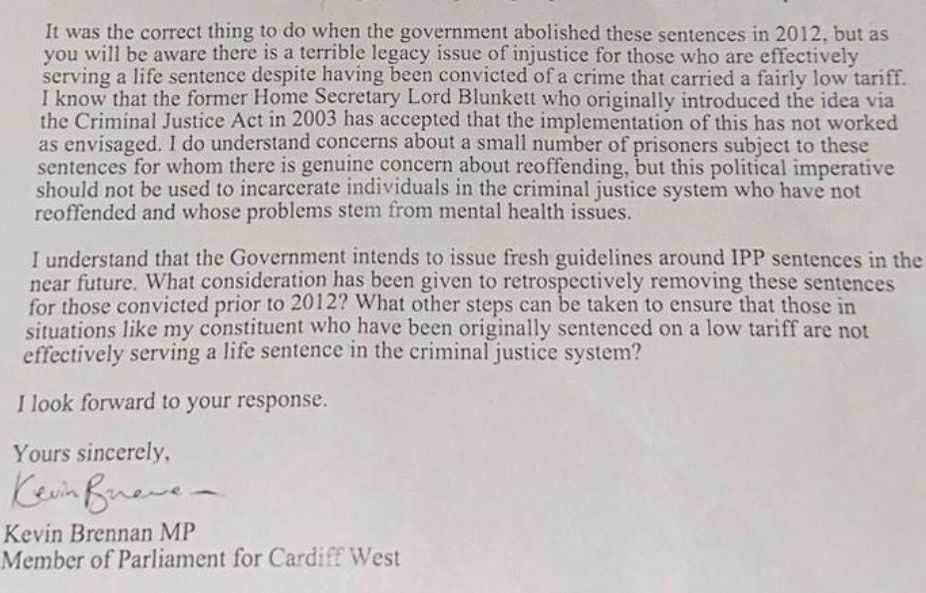“I’ve just signed a letter calling on the new Justice Secretary to work at pace to end one of the most shocking, cruel, inhumane, degrading and monumental injustices of the past half-century – IPP sentences – a scandal which has a already claimed the lives of 90 people serving IPP sentences in prison and a further 31 that we know of in the community”